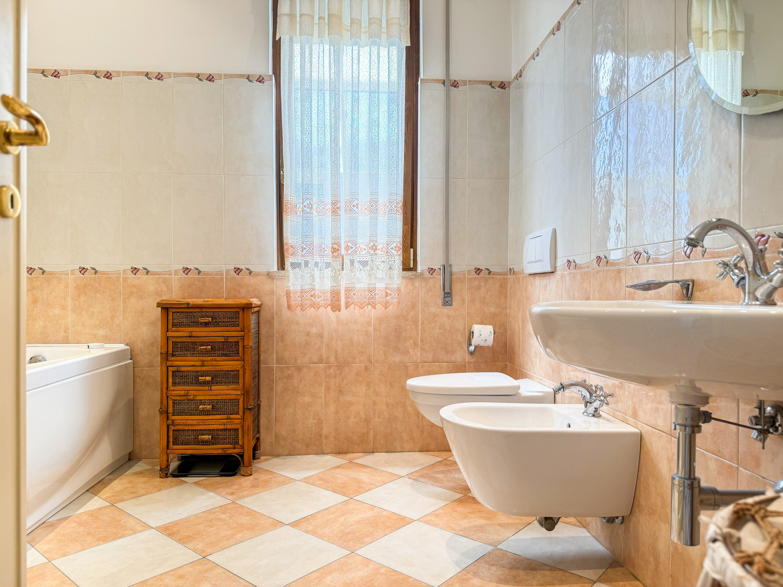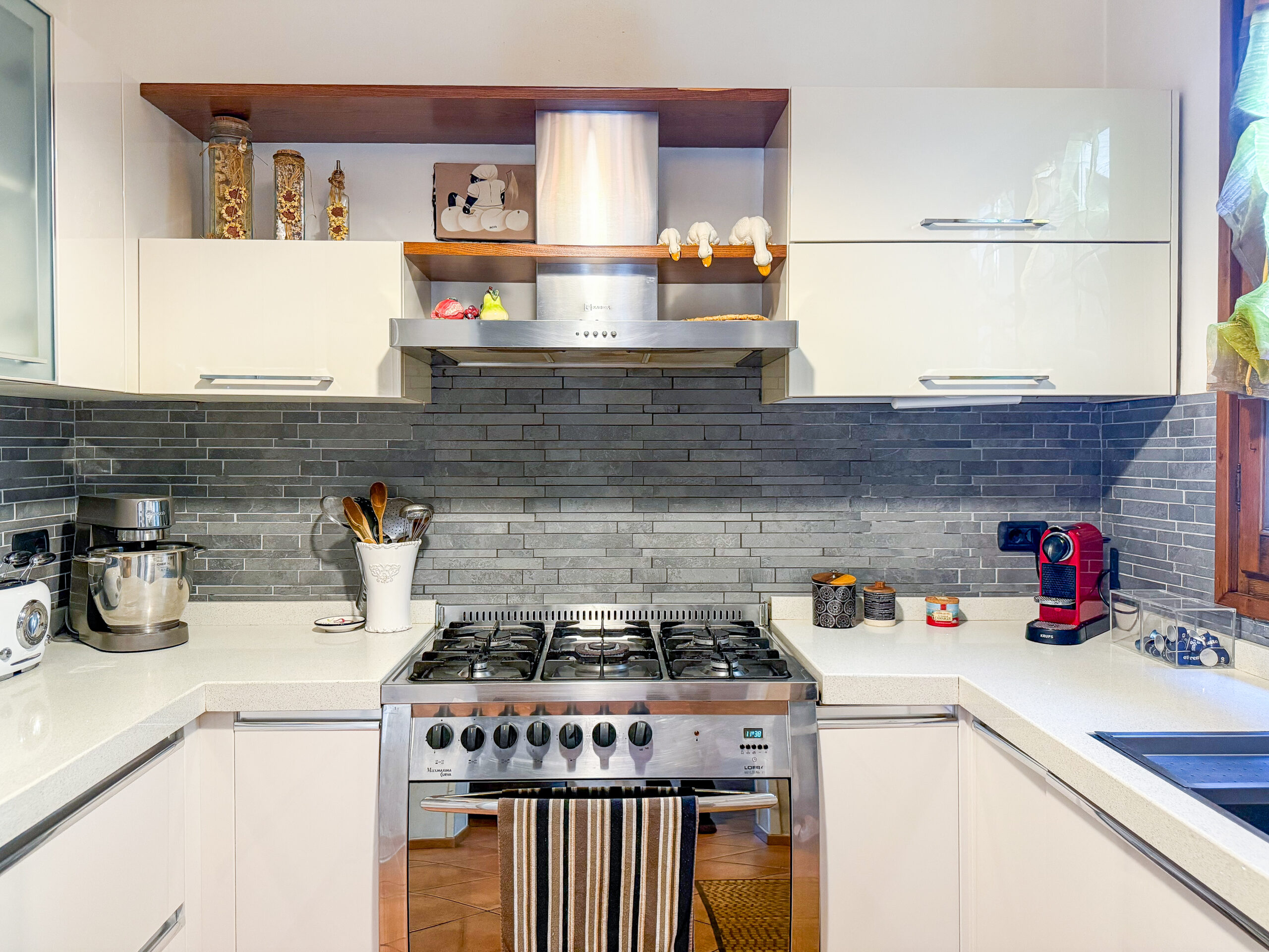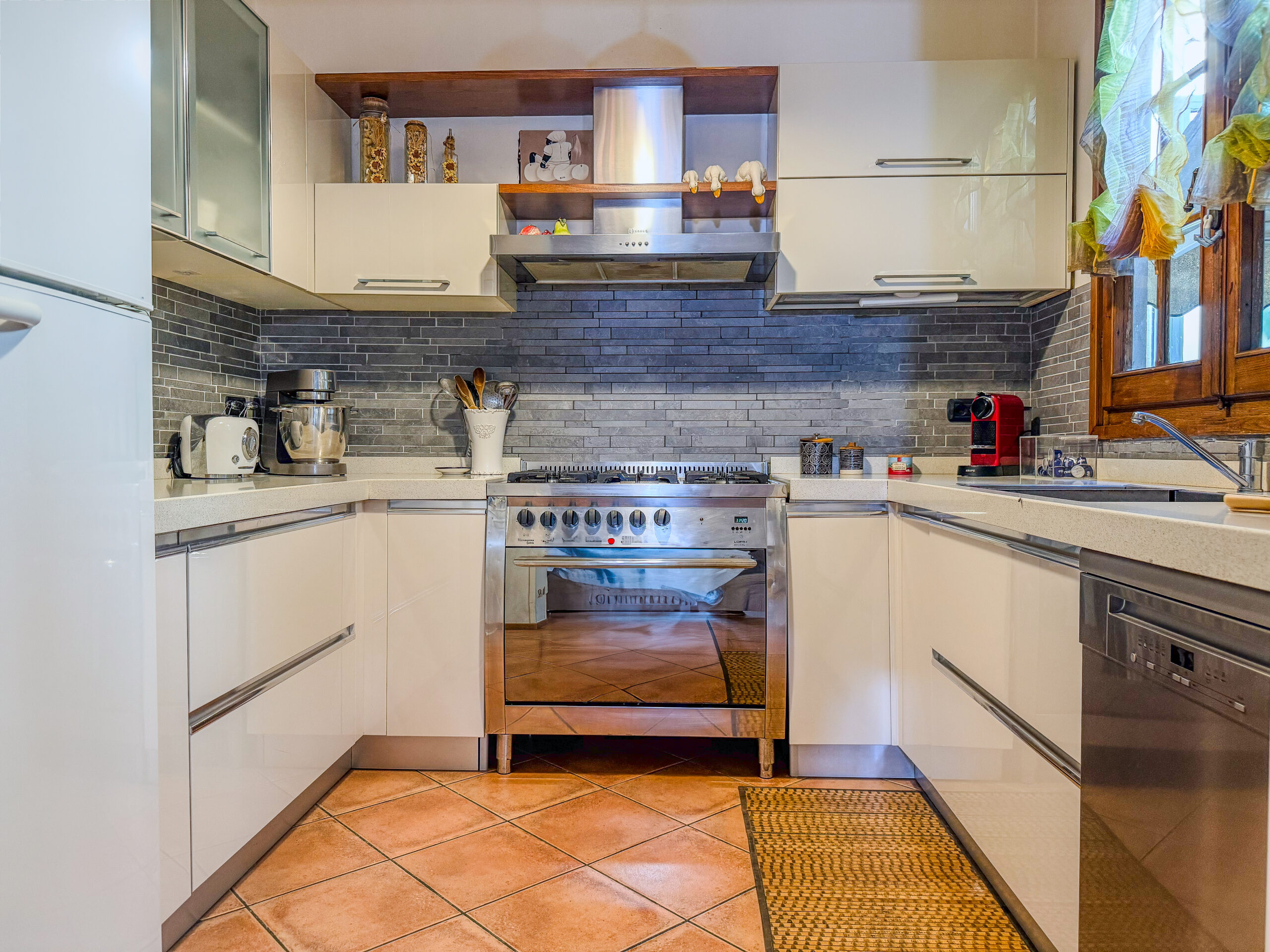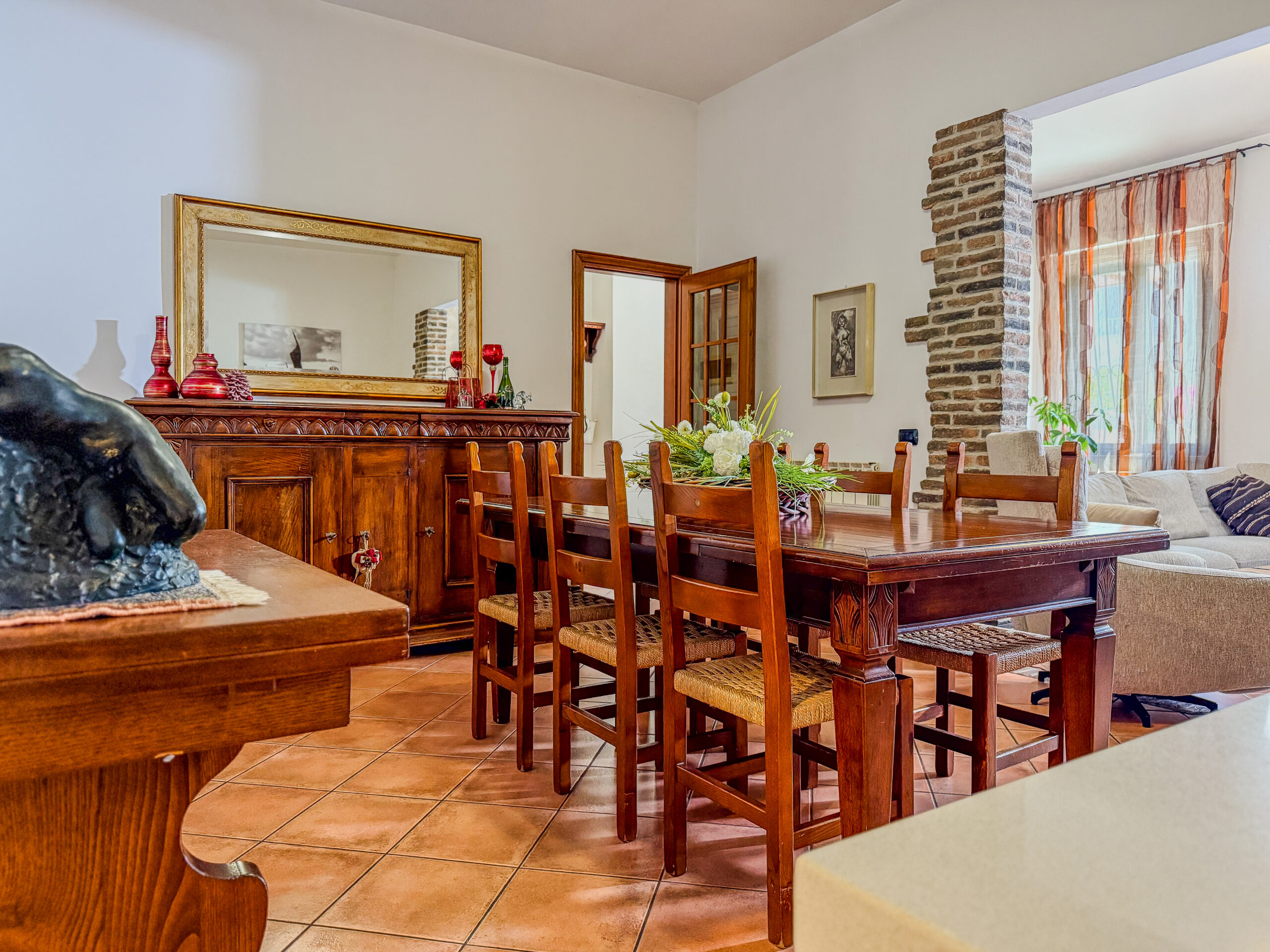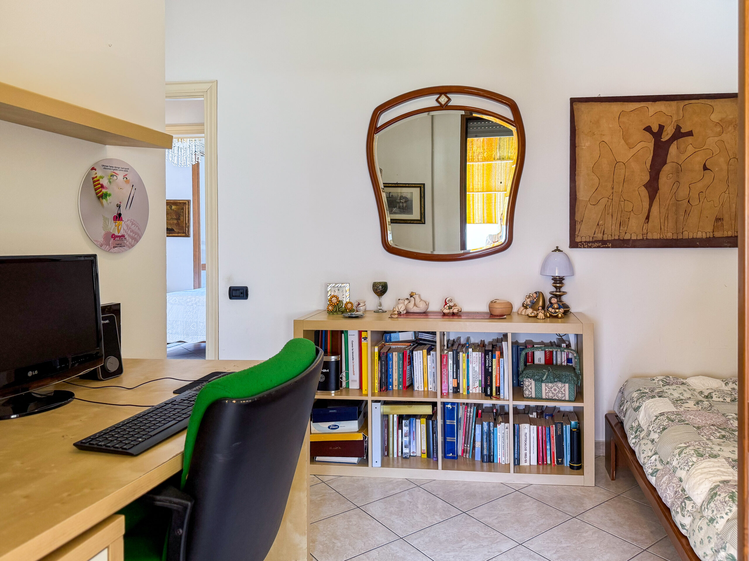 Al piano terra, la zona giorno si apre con naturalezza: salone immenso, cucina aperta sul tinello, giardino davanti, resede sul retro.