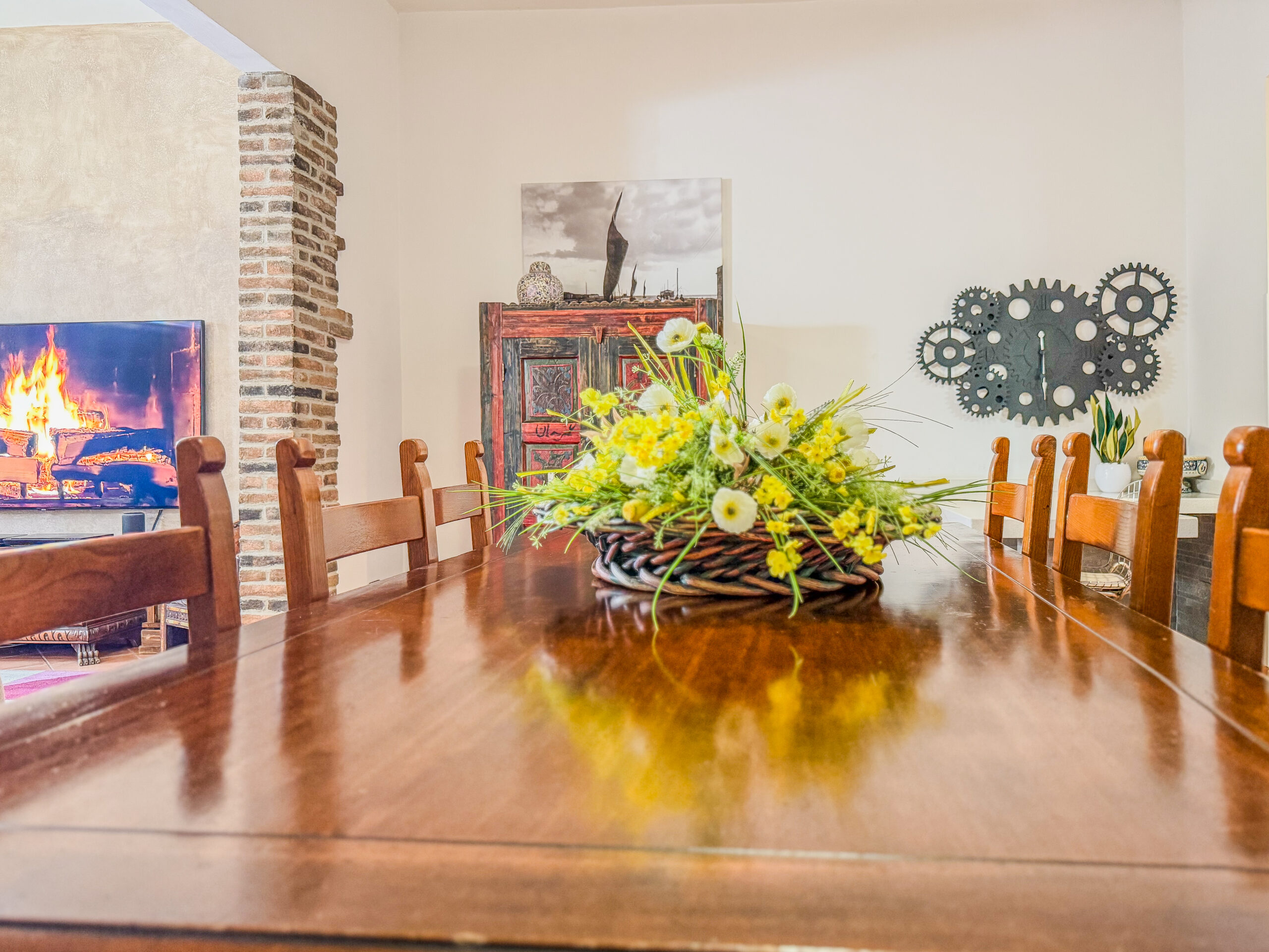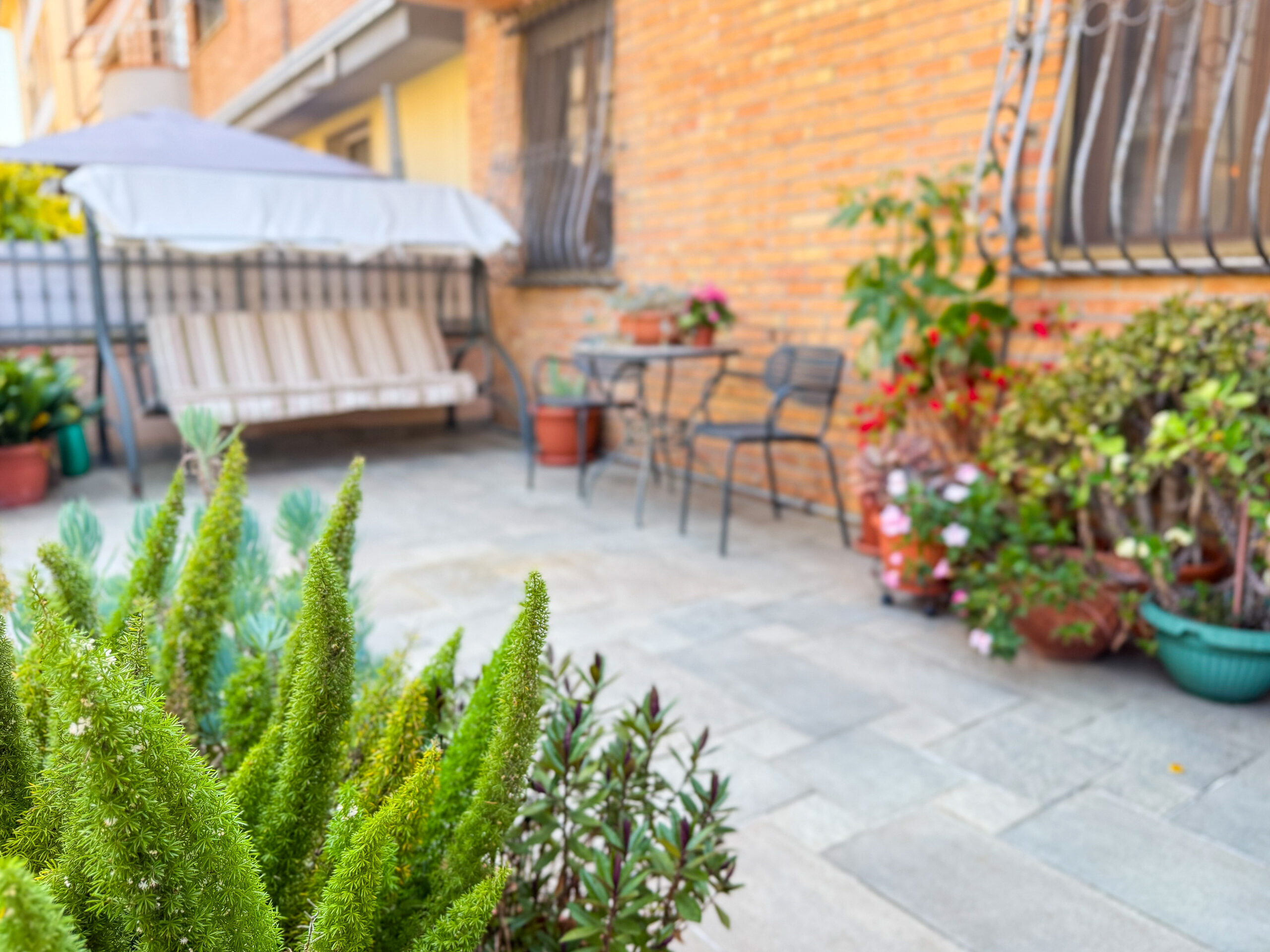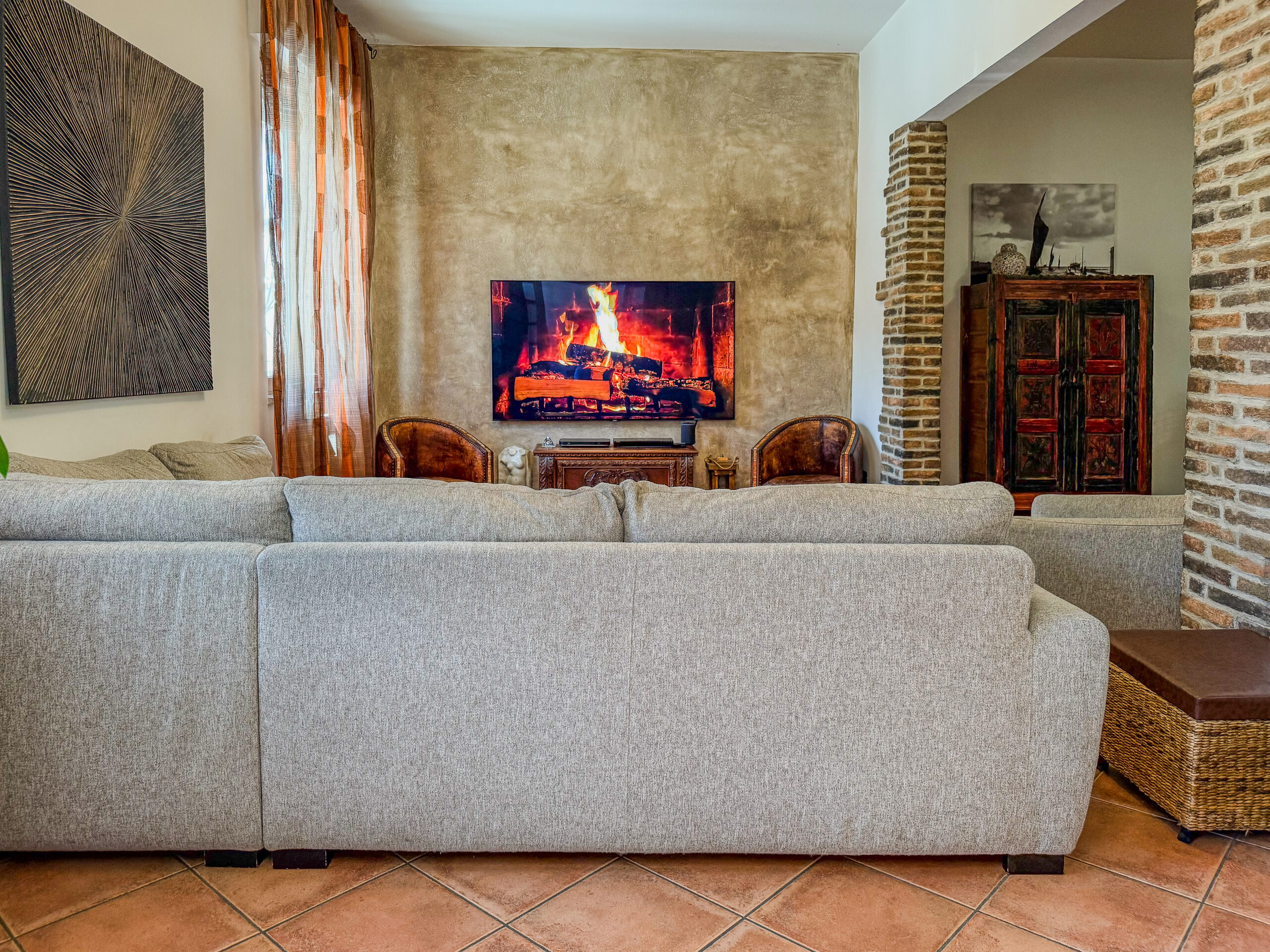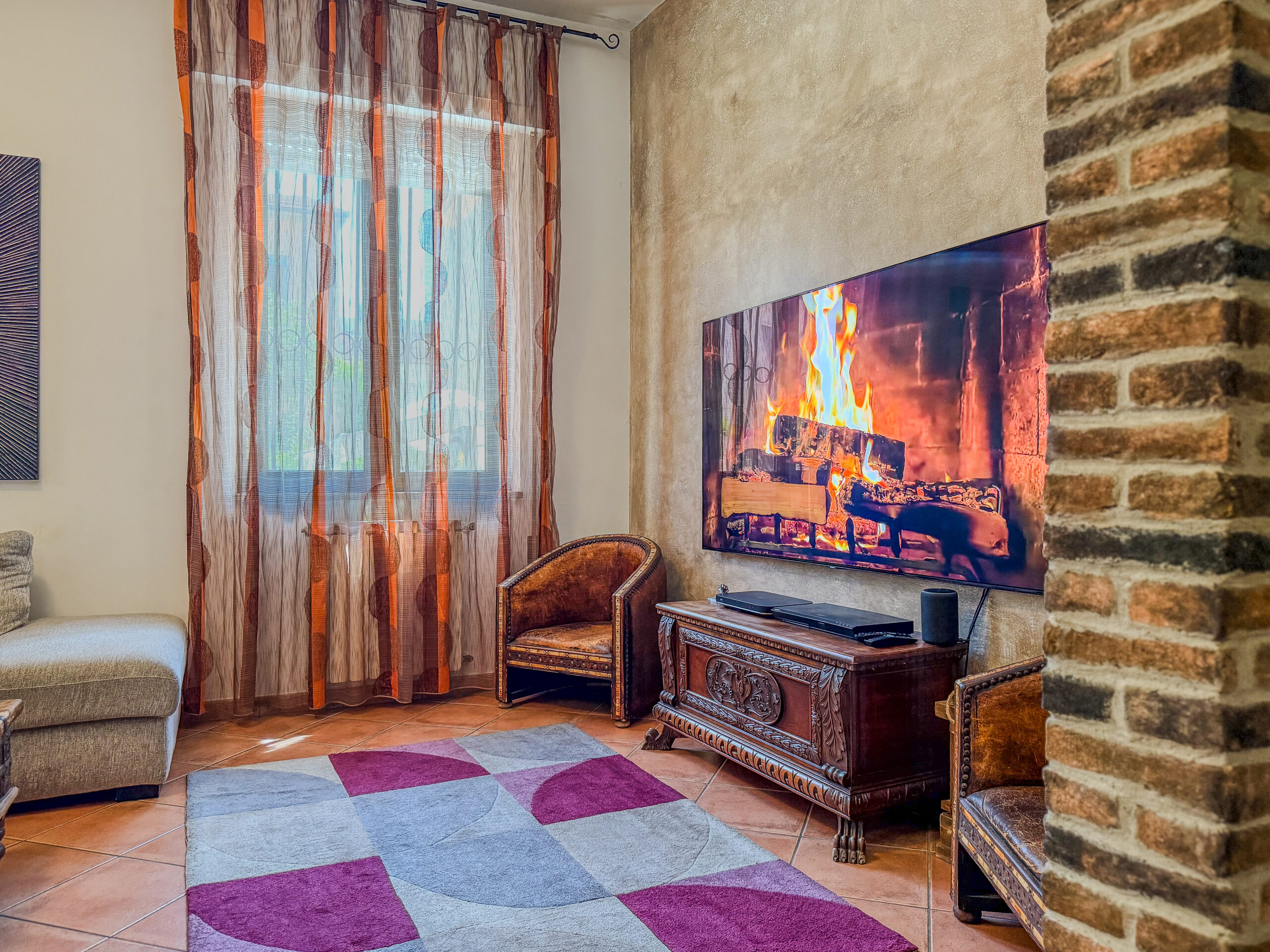 Al piano terra, la zona giorno si apre con naturalezza: salone immenso, cucina aperta sul tinello, giardino davanti, resede sul retro.
