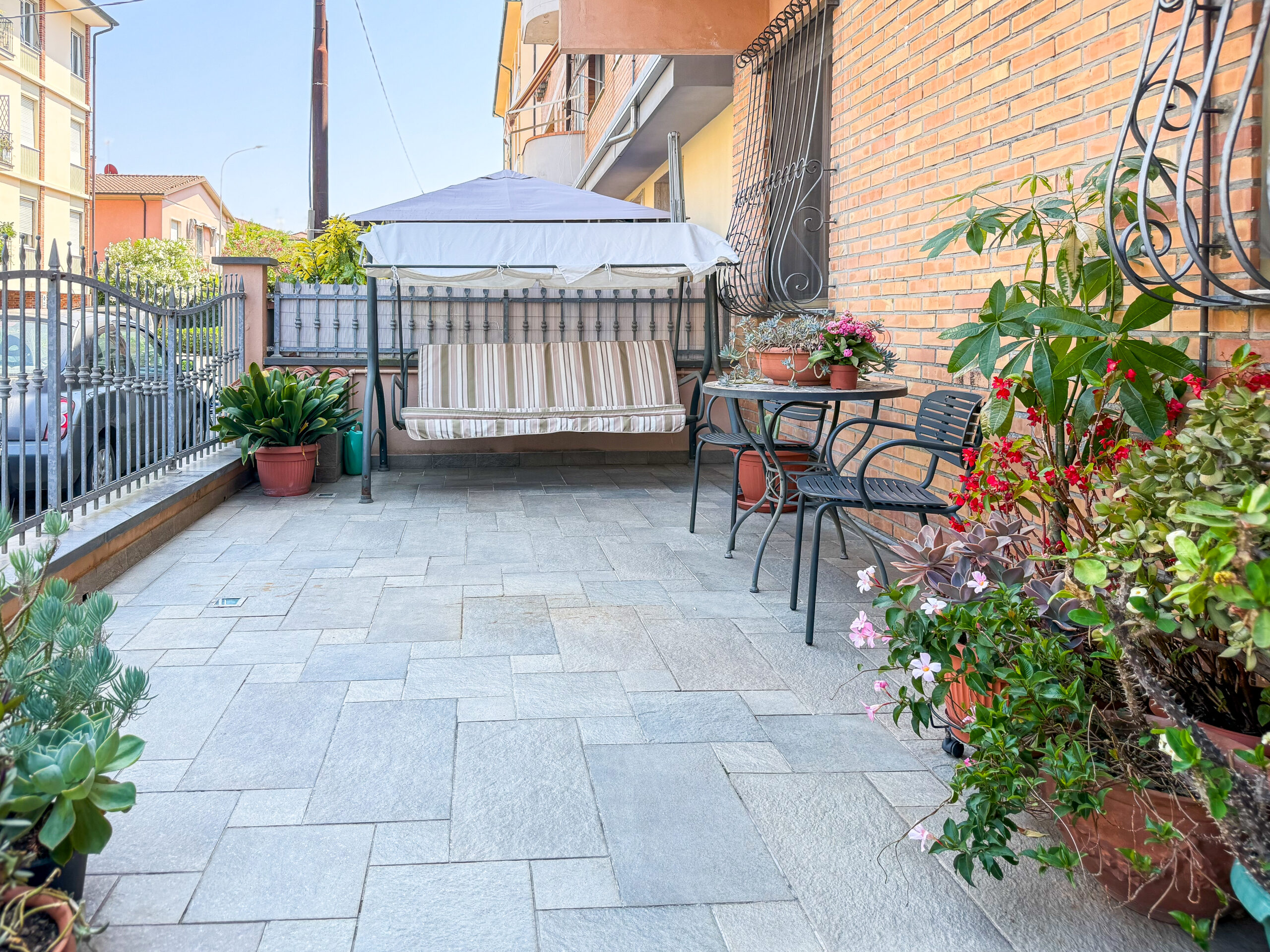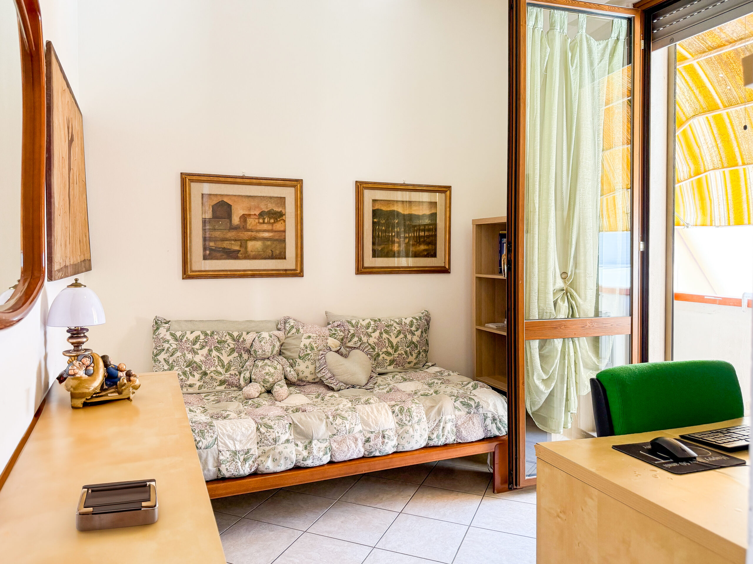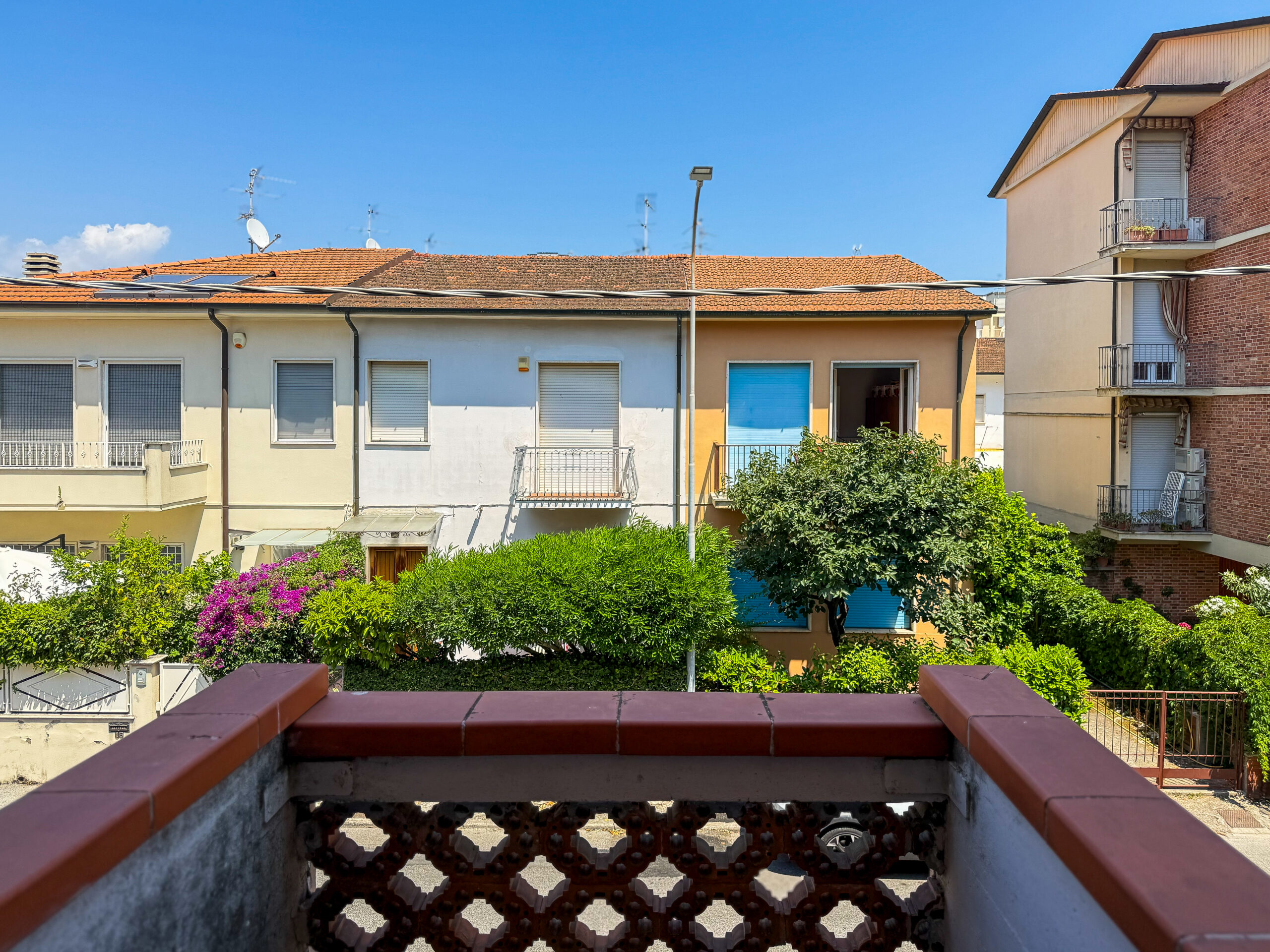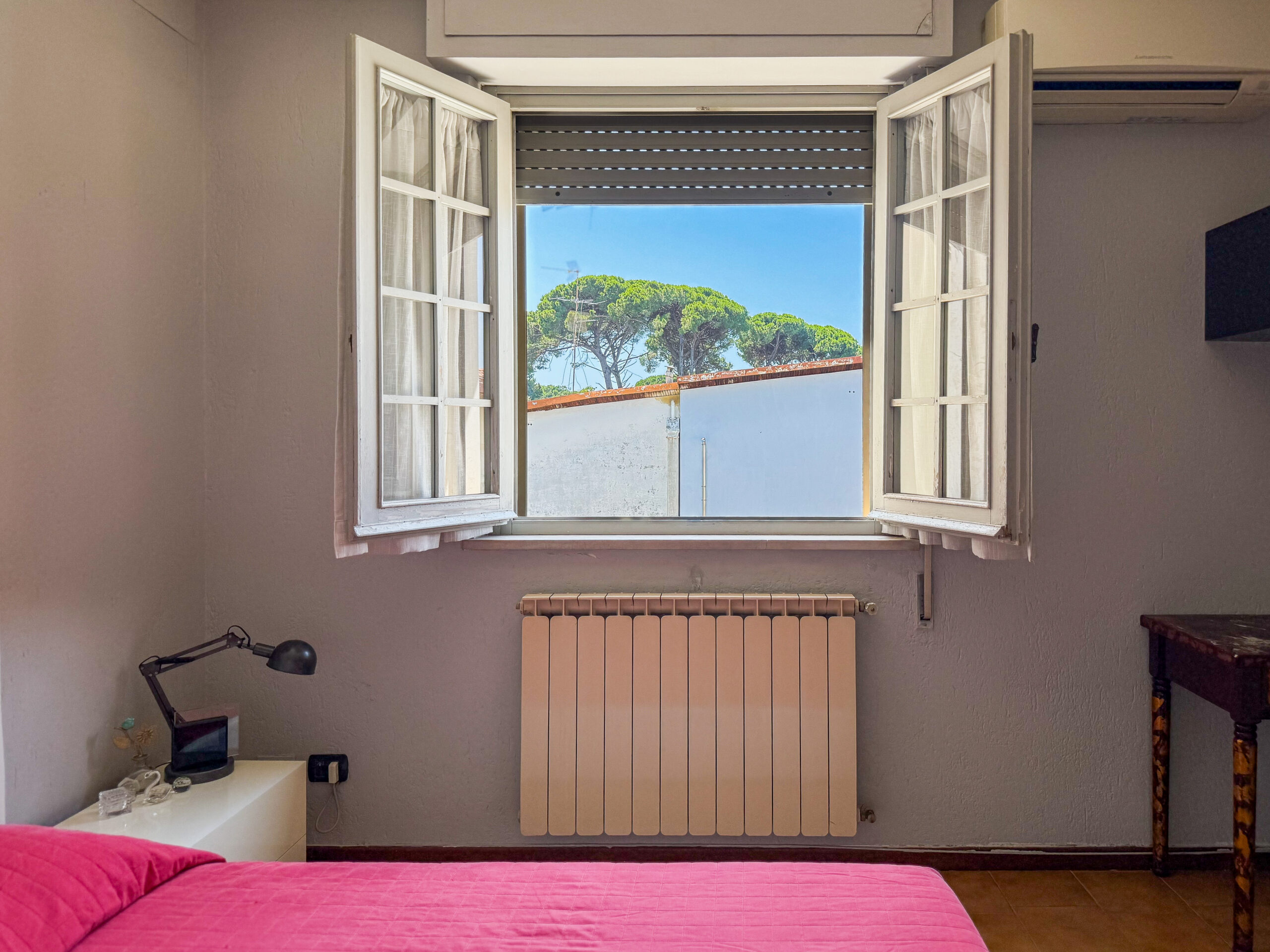 Fuori, un quartiere silenzioso ma vivo: pineta a 100 metri, mare a cinque minuti a piedi, supermercati, negozi e vita di quartiere a portata di mano.