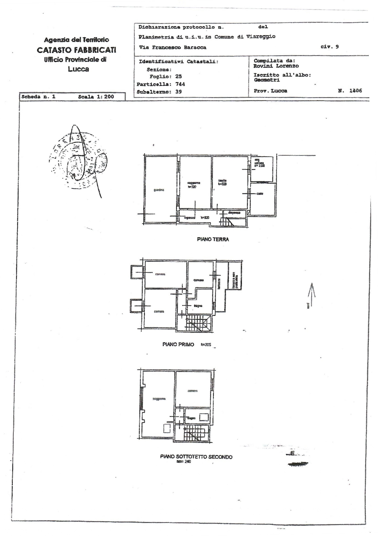 Al primo piano, tre camere accoglienti, una matrimoniale, una media e una cameretta, ognuna con la sua luce, due balconcini e una terrazza.
